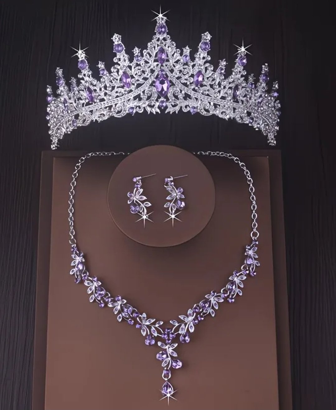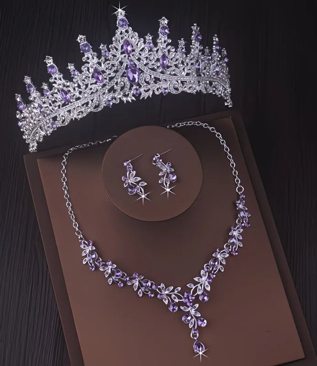 set de tiara y collar con aretes lady lila silver