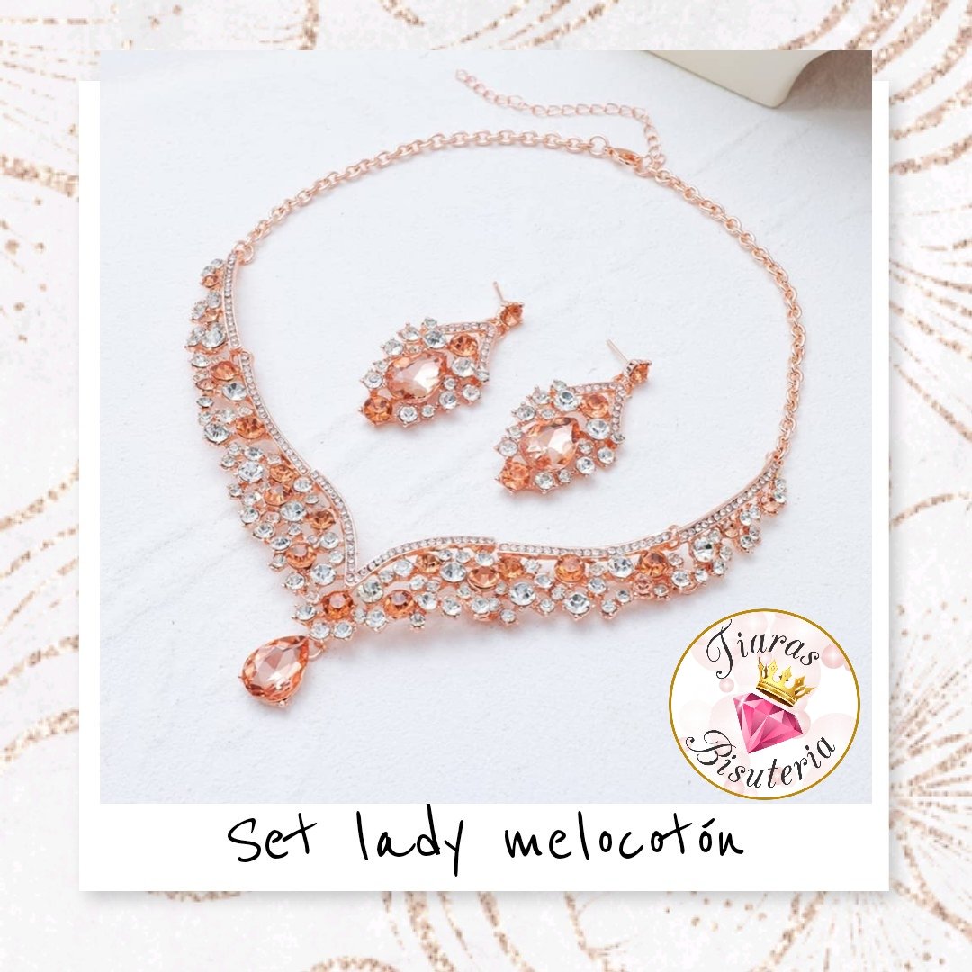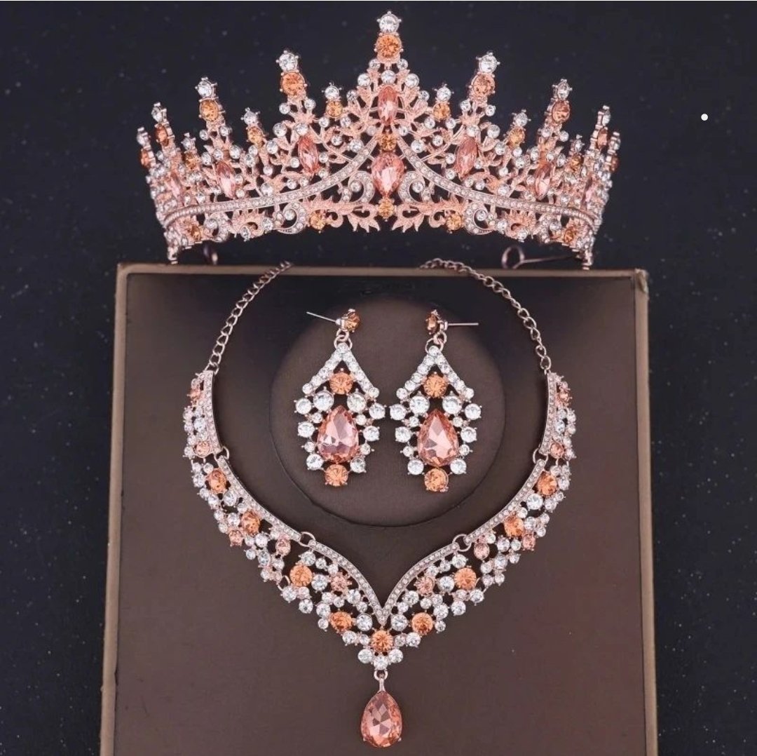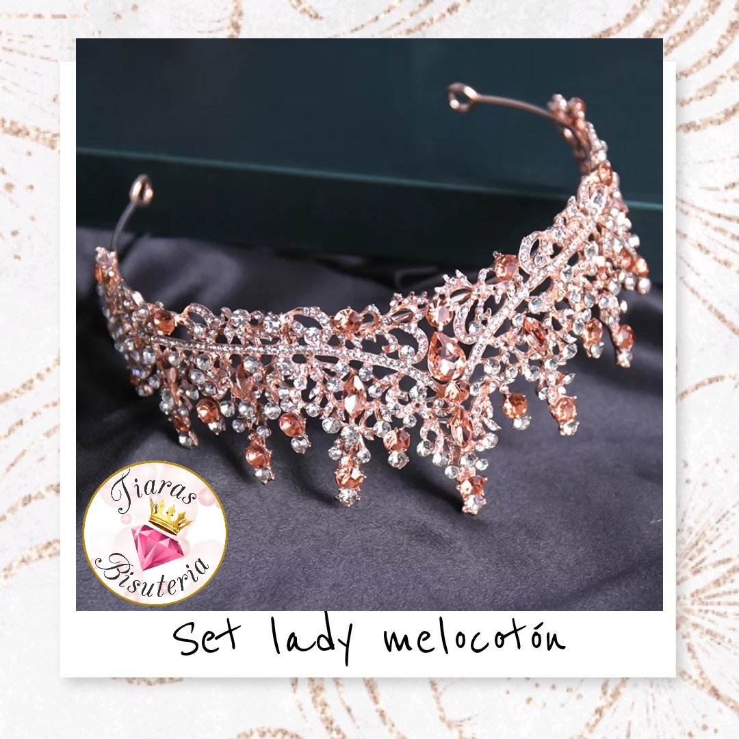 Set de tiara y collar con aretes lady rose gold melocotón