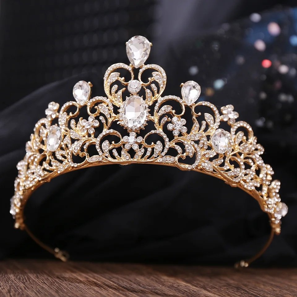 tiara dorada, material fantasía fina con incrustacion de cristales checos,7cm de alta