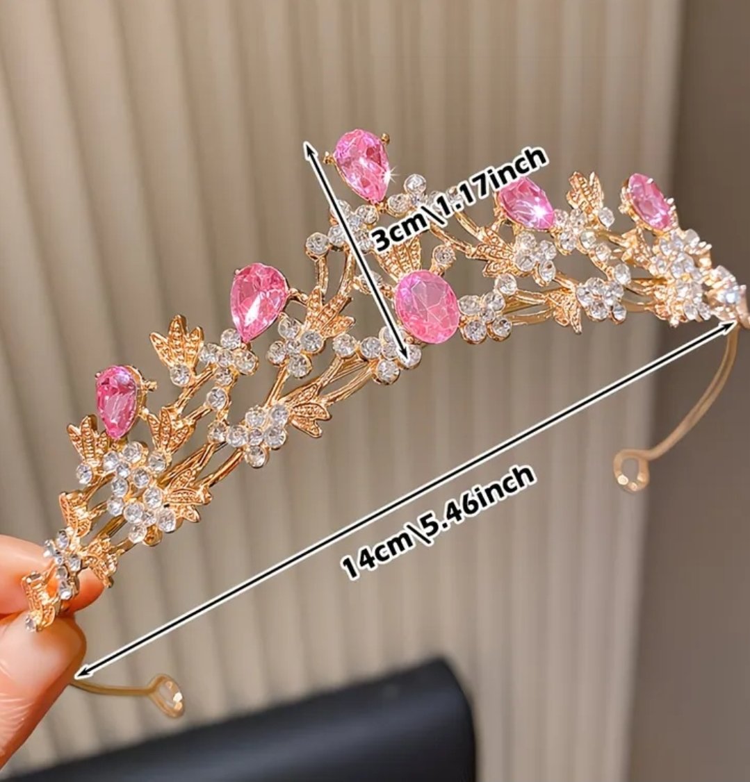 tiara dorada con toques rosa