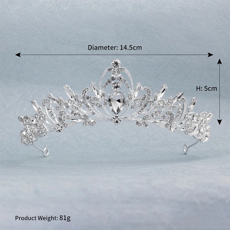 tiara plateada, base de metal fantasía fina con incrustacion de cristales checos