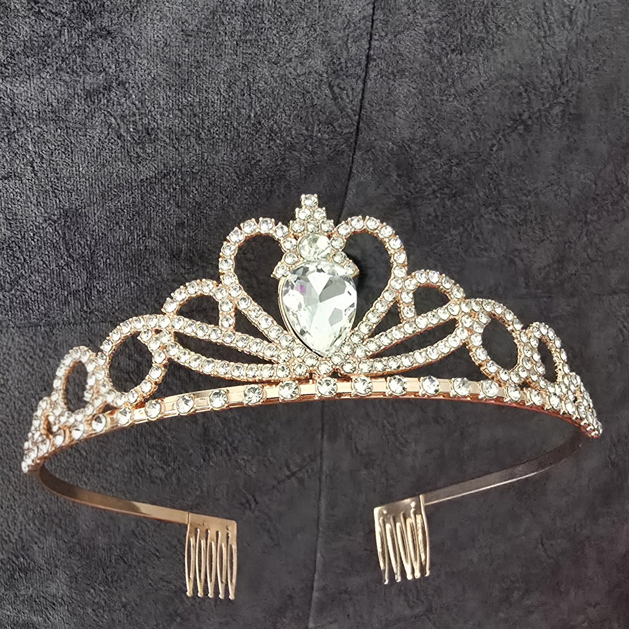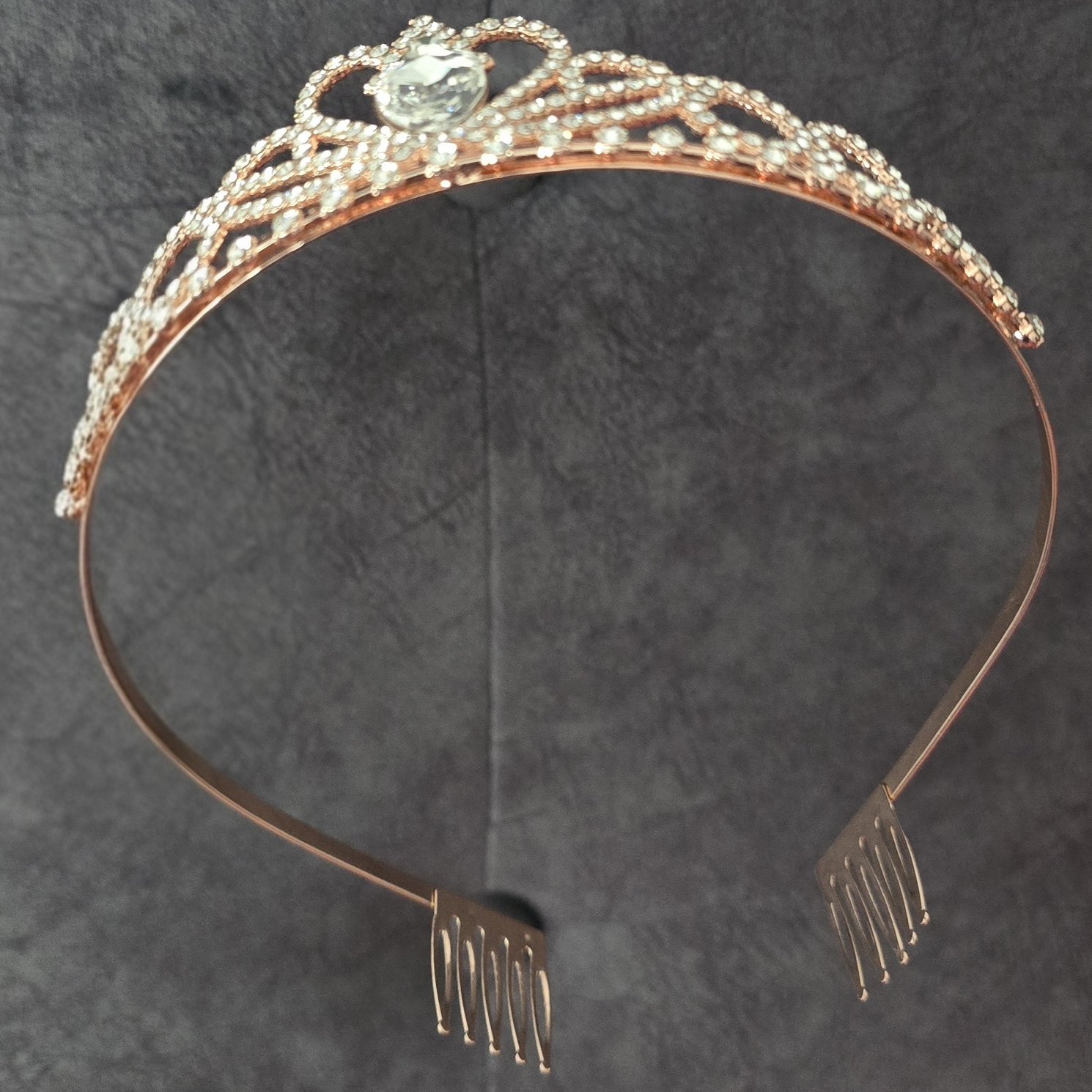 tiara color oro rosa, material fantasía fina con incrustacion de cristales checos