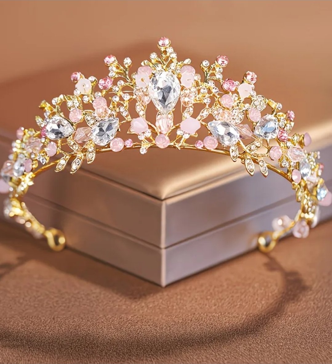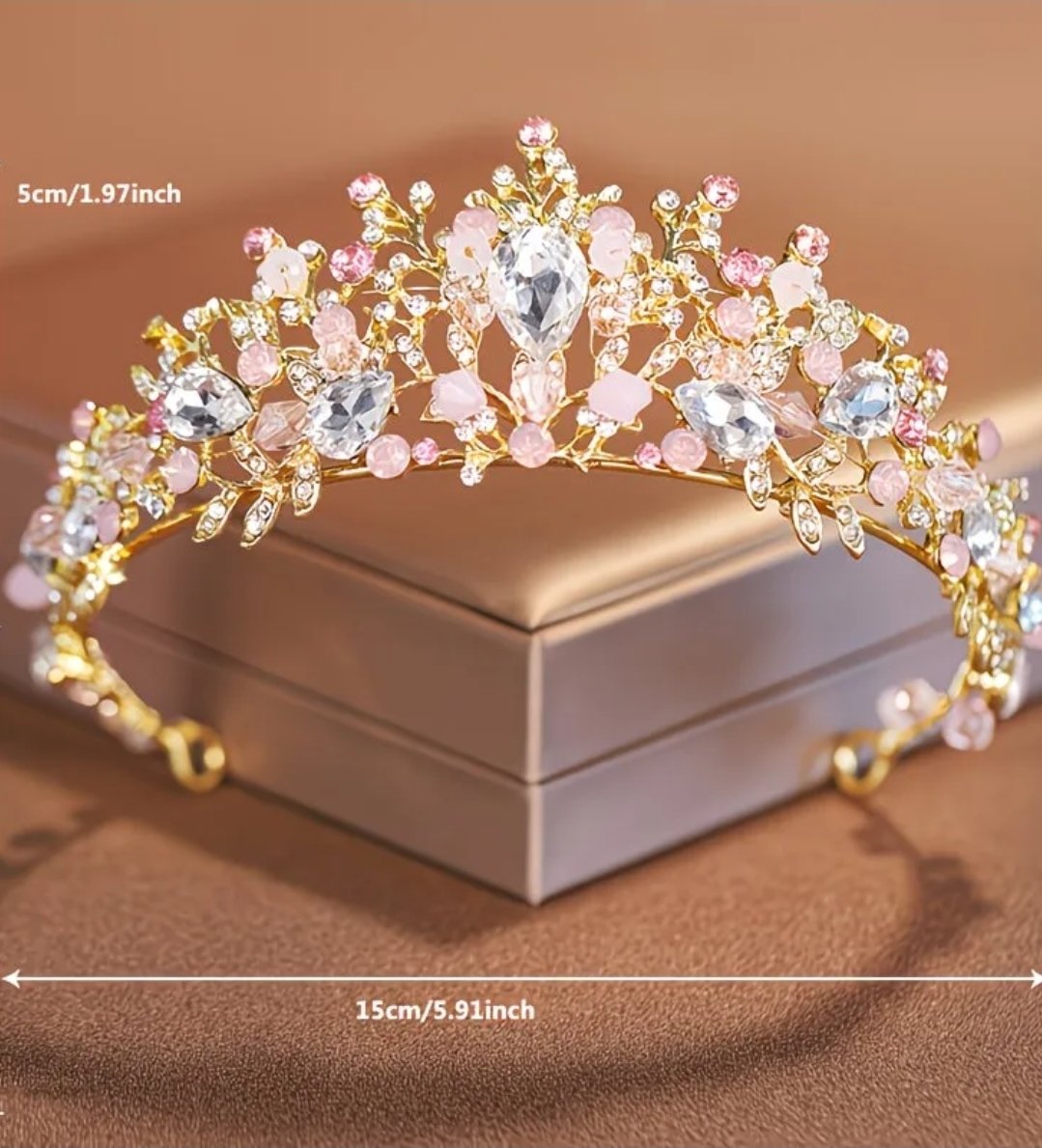 tiara dorada, material fantasía fina con incrustacion de cristales checos